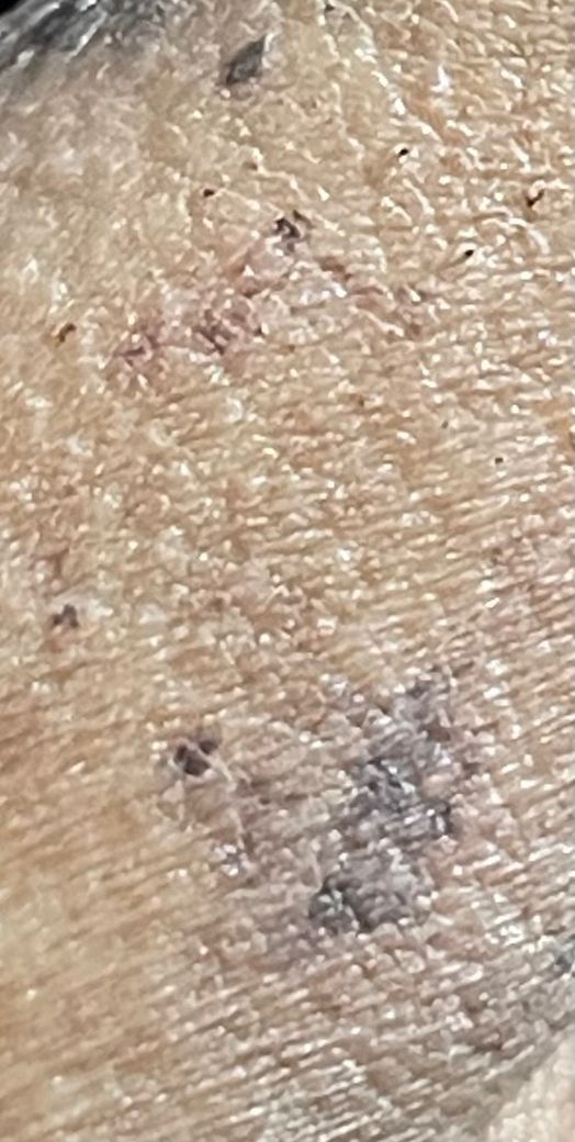 제모의 과정에서 모낭과 피부에 가해진 자극으로 멍이 들었을 확률이 가장 높아 보입니다.