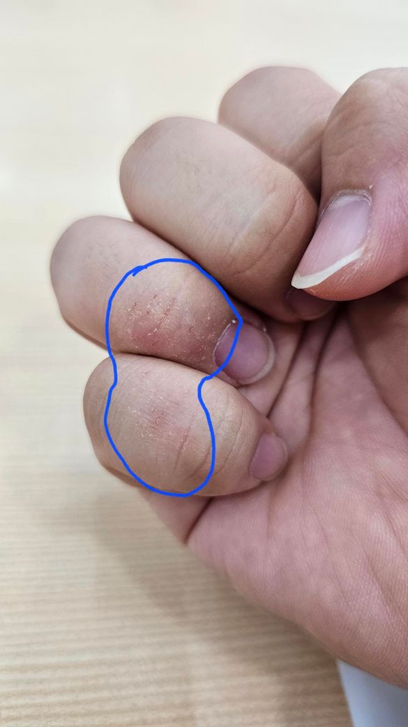 약지, 새끼 손가락에 생긴지 약 3달정도 된거 같은데 뭔가요? 아토피일까요? 자꾸 간지러워서 건드리게 됩니다. 전염성이 있는건가요?