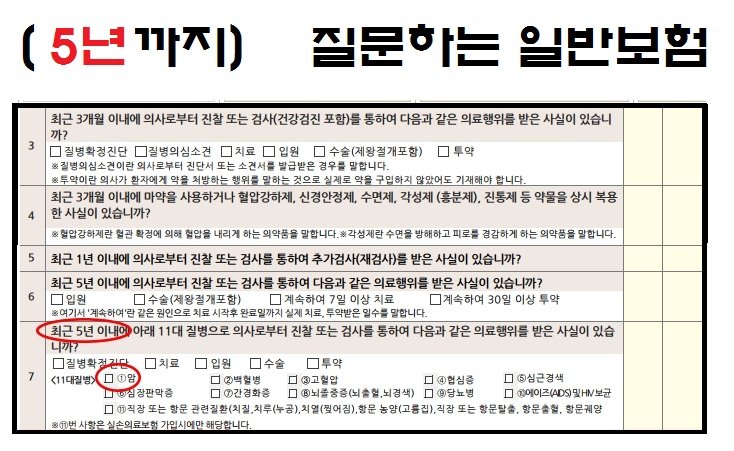 최근 5년 이내에 암진단이나 암수술을 받은 사실이 있는지를 고지하도록 하는 것.