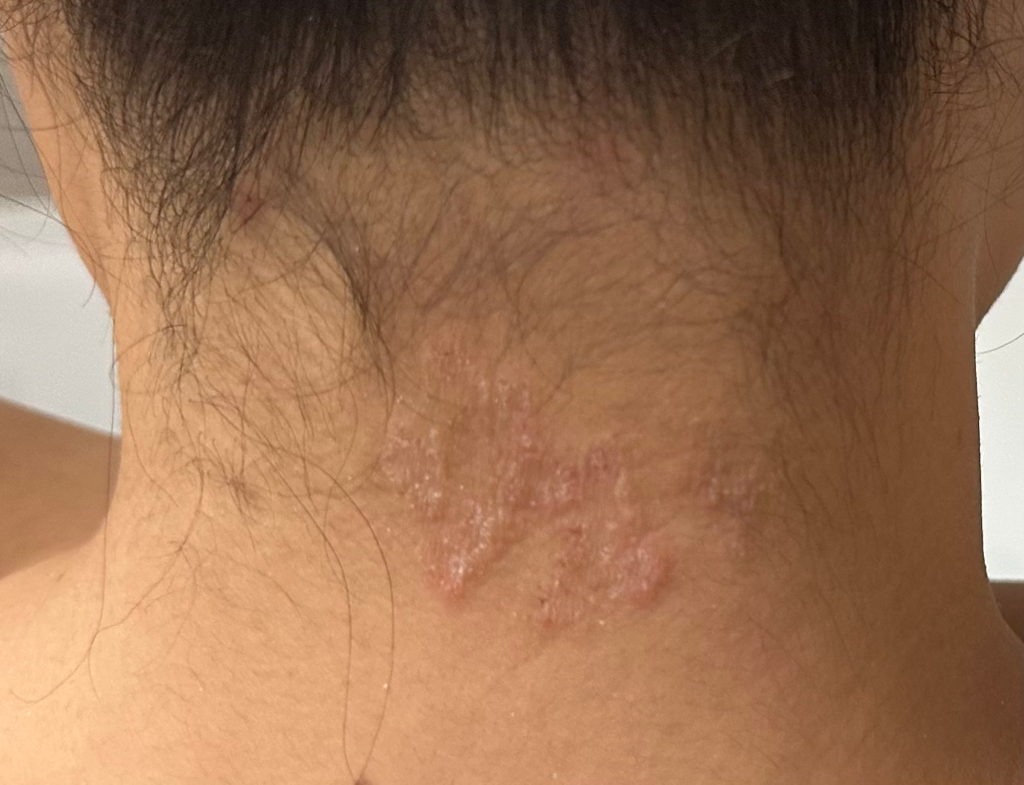 습진성 병변이 관찰됩니다. 가까운 피부과를 방문해 진료를 받아보시는게 좋겠습니다. 연고를 사용할 필요가 있어보입니다.