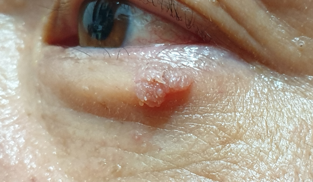사진의 소견을 통해서 보았을 대에는 사마귀일 가능성이 높아 보입니다. 하지만 정확한 판단을 위해서는 조직 검사가 필요할 것으로 사료됩니다. 안구 주변이기 때문에 피부과 보다는 안과에서 진료 및 검사, 치료를 받으시는 것이 안전하겠습니다.