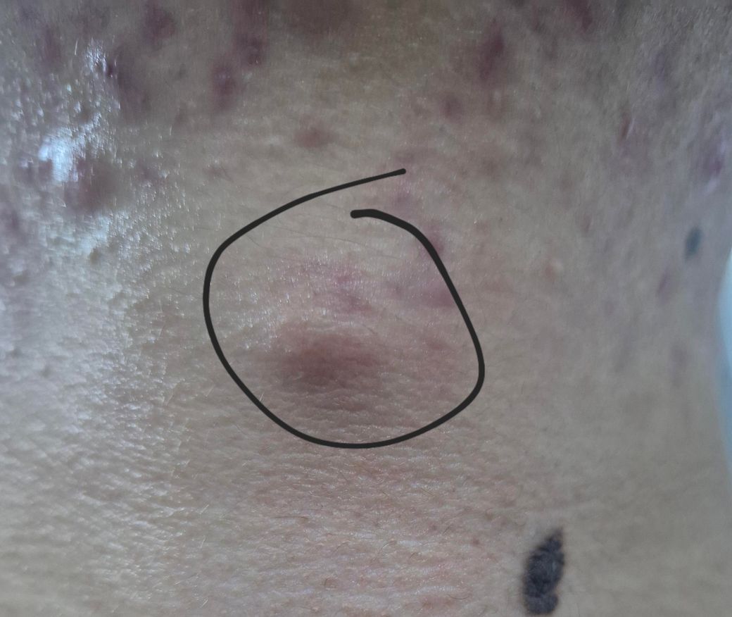 목에서 먹울(딱딱한)이 잡히고 멍울하고 그 주변 피부를 같이 다른 방향으로 당기면 같이 움직입니다.