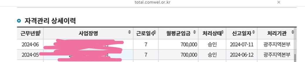 고용보험 상에는 아래와 같이 입력되어있으니, 참고하여 답변 주시면 감사하겠습니다~