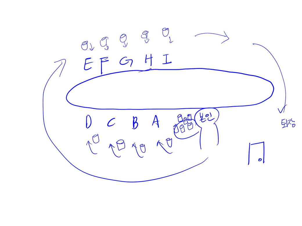 기다련 타원형 테이블에 앉아계시면 받침대에 있는 커피를 하나하나 앉아계시는 분들한테 배달하면될까요?