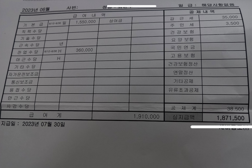 회사는 급여명세서 하단에 계산내역까지 명시해야 할 의무가 있습니다.