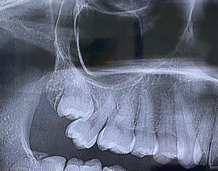 발치를 하지 않으면 앞 어금니에 안 좋은 영향(충치유발, 치근흡수)도 있을 수 있지만 반면 뺄때도 앞 어금니에 영향을 줄 수도 있습니다 각도상 어쩔 수가 없네요