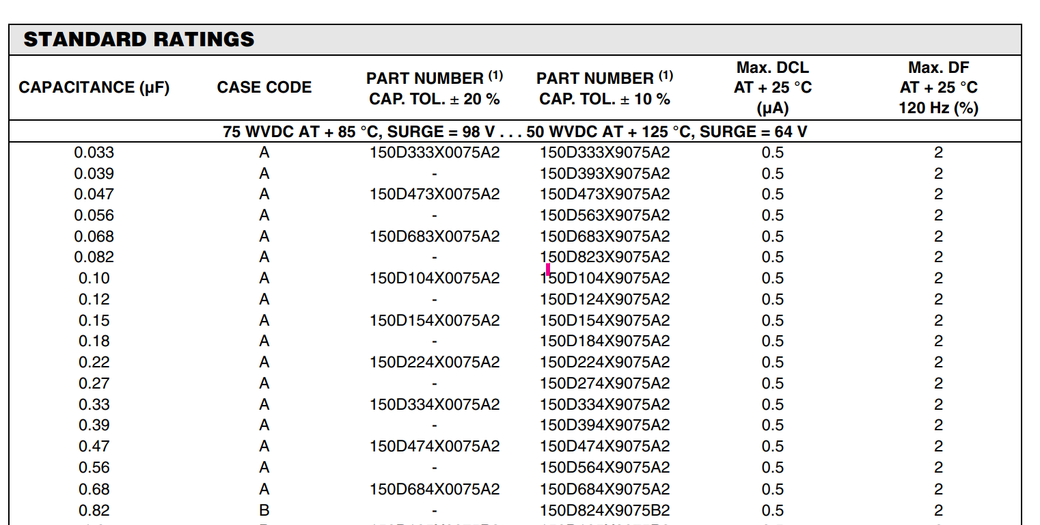 커패시터 데이터 시트를 보고있는데 어떻게 보나요?