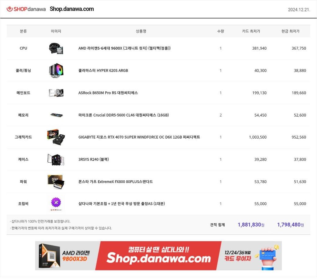 확실히 게임및 캐드작업용이라서 그래픽카드에 힘을 많이 주셧네요 가격 비교사이트는다나와가 최고 싼것으로 알고 있습니다 저장도면 괜찮은거같네요