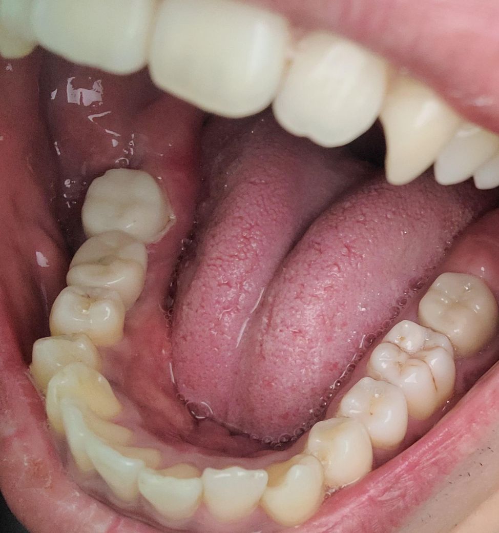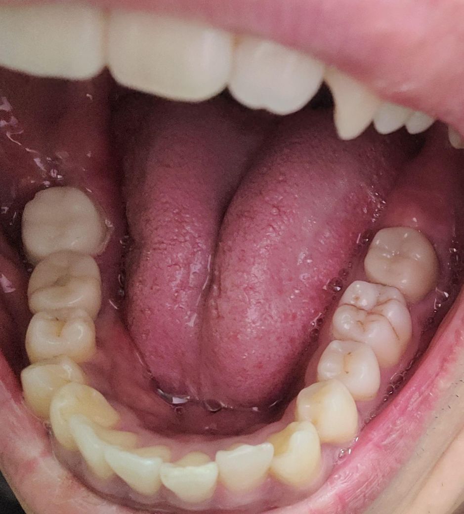 좌측 하악 맨뒤 어금니 신경치료 다 받고나서 어제 인상채득 후 본뜨고 임시치아 했는데 잇몸주변 하얀부분이 까진것같은데 잇몸이 아프긴합니다. 사진 밝게 다시찍었는데 추가처치 받으러가야 할까요?