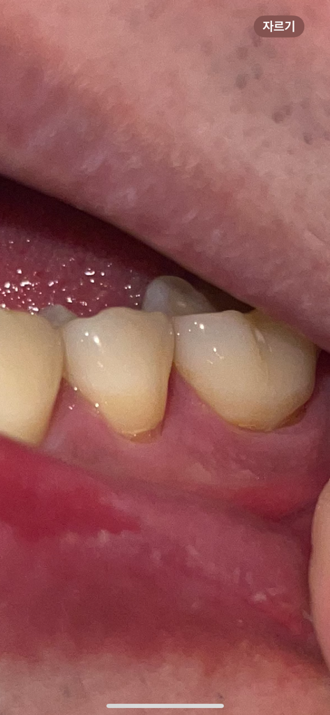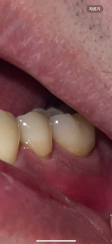 현재 치경부에 마모가 있는 것은로 보이며, 해당부위를 방치하는 경우 치아시림이 발생할수 있기에 레진으로 메꾸는 치료를 받길 권합니다.