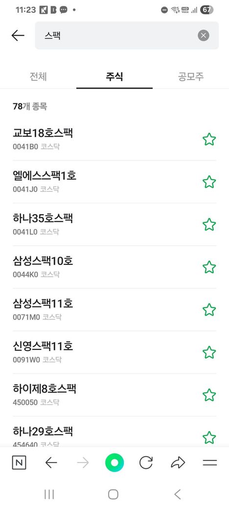 스팩이라고 검색을 하면 스팩 종목들이 첨부사진처럼 나오잖아요.