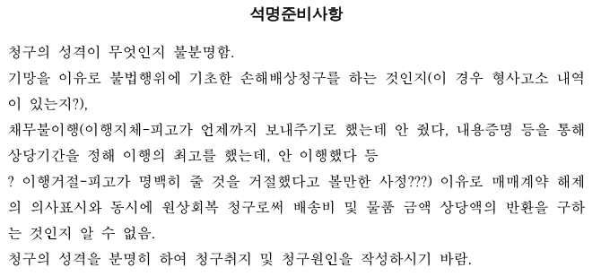 중고사기 민사소송 중 석명준비사항이 내려졌는데 청구의 성격을 어떻게 정리해야 할까요?