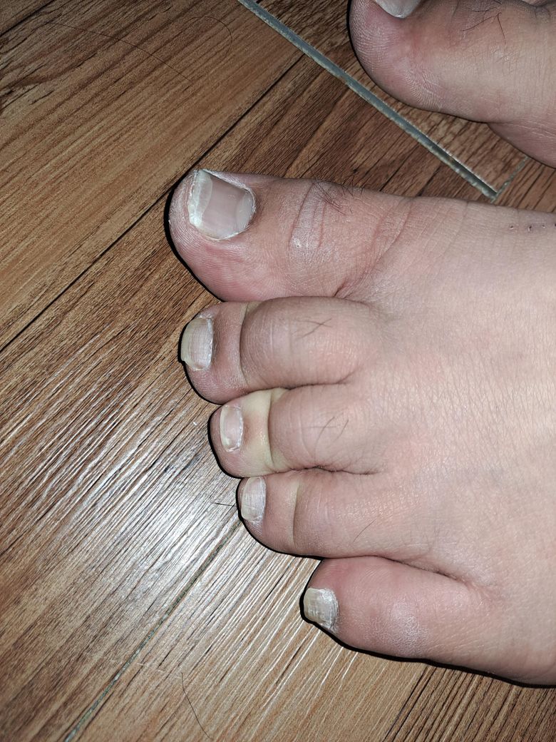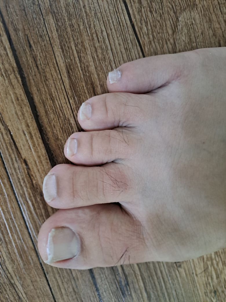 새끼발가락쪽에 흰색 줄같은게 있어서 질문드립니다.