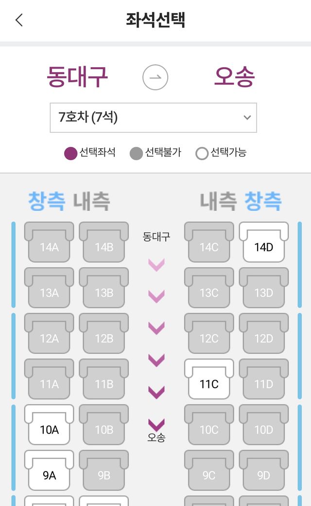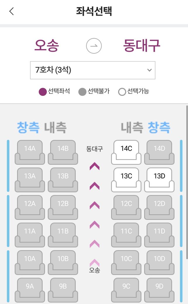 동대구>>>오송 일때 14A,14B,14C,14D 맨뒷자리