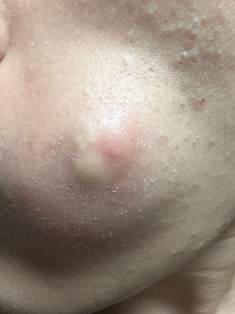 전에 속 여드름에 염증주사를 맞은 후 속에 둥글고 단단한게 느껴집니다. 혀로 눌러보면 하얗고 둥글게