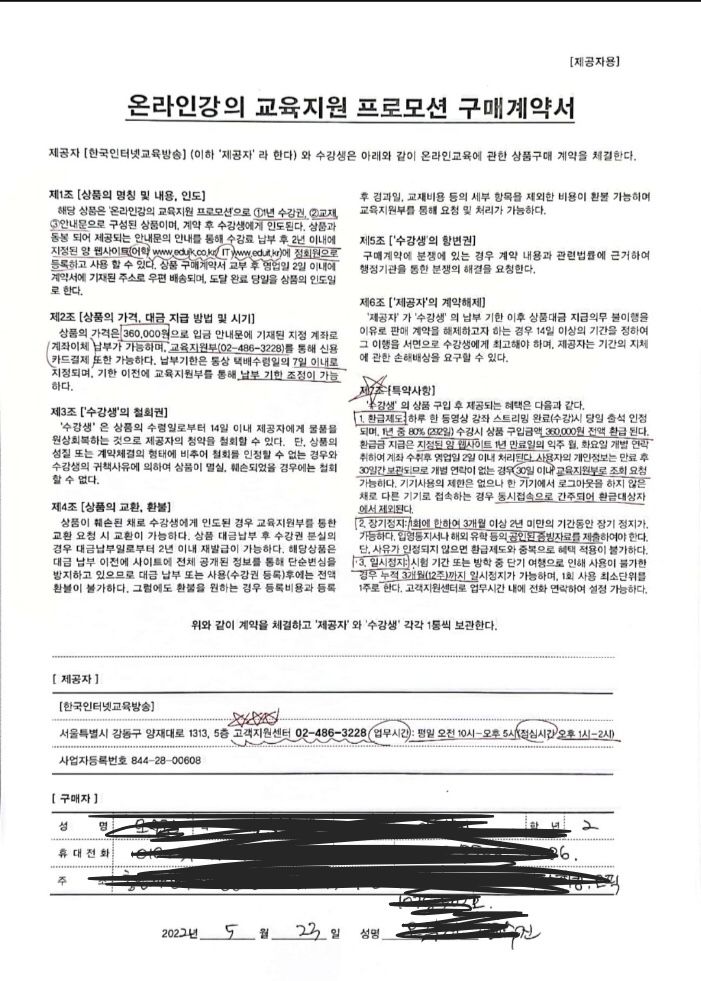 대학교에서 인터넷강의 설명해주셔서 그때는 하고싶은생각에 계약서를 작성했다가 까맣게 잊어버리고