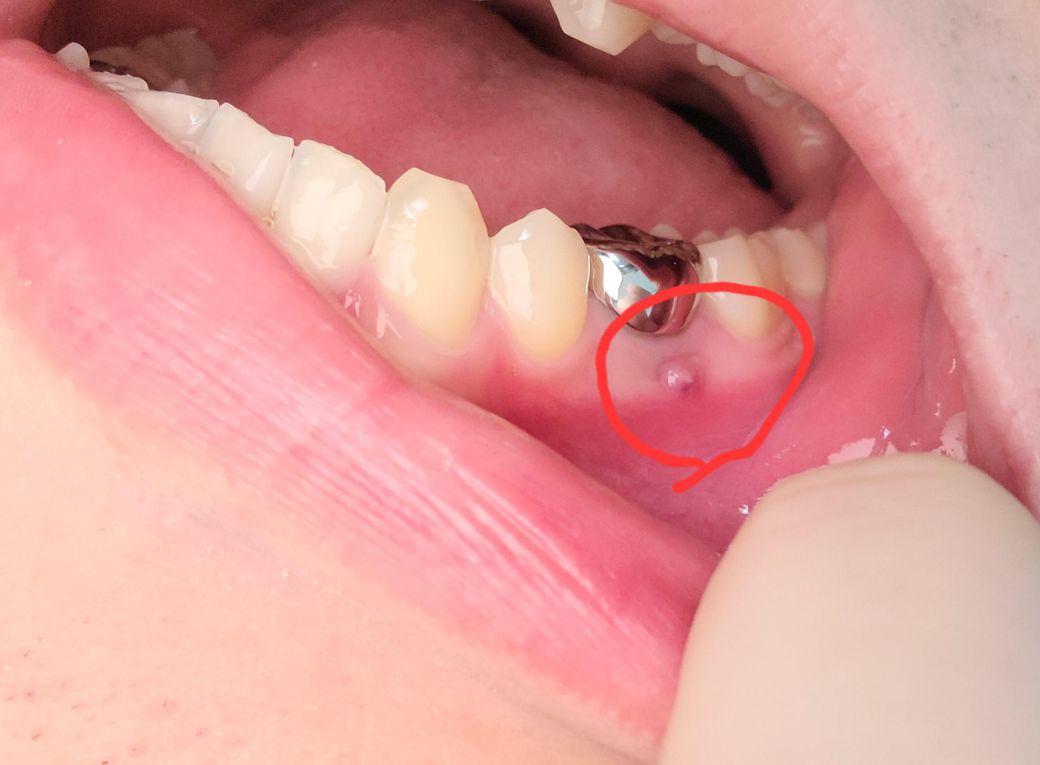 사진에 보시는 것과 같이 왼쪽 어금니 아래쪽에 저렇게 오돌토돌한 게 생겼더군요. 아프거나 하진 않습니다.