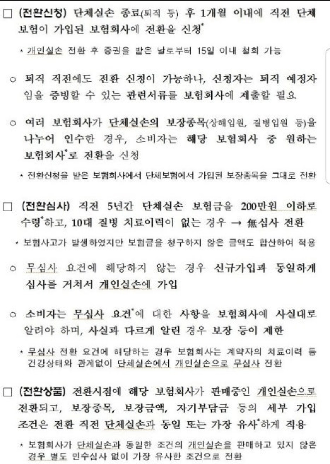 일단 단체보험 당시 판매중인 실손의료비로 전환 가능합니다.[금감원 보도자료]