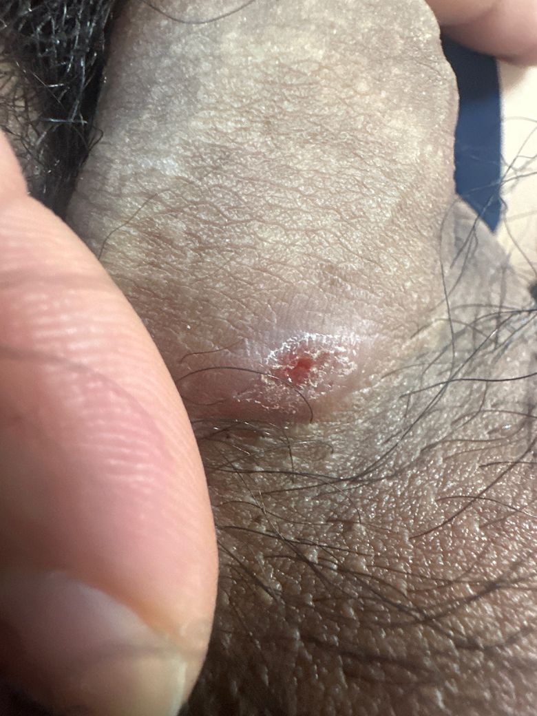 남자 성기에 밑에 기둥 밑 고환이랑 피부이어지는부분에 여드름이 난거같은데 , 고름 이나 이런게 나오지는 않구요 , 만져보면 피부안에 응어리 같은게 만져집니다