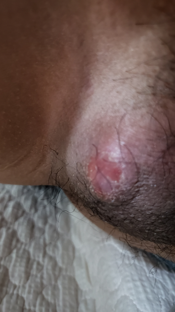 현재 사진상으로 해당 부위 부종 및 발적 소견이 보이므로 항생제 혹은 외과적 처치가 필요할 수도 있습니다. 정확한 진단을 위해 비뇨기과에 내원하시어 진료 후 적절한 처치를 받으시는 것이 좋겠습니다.