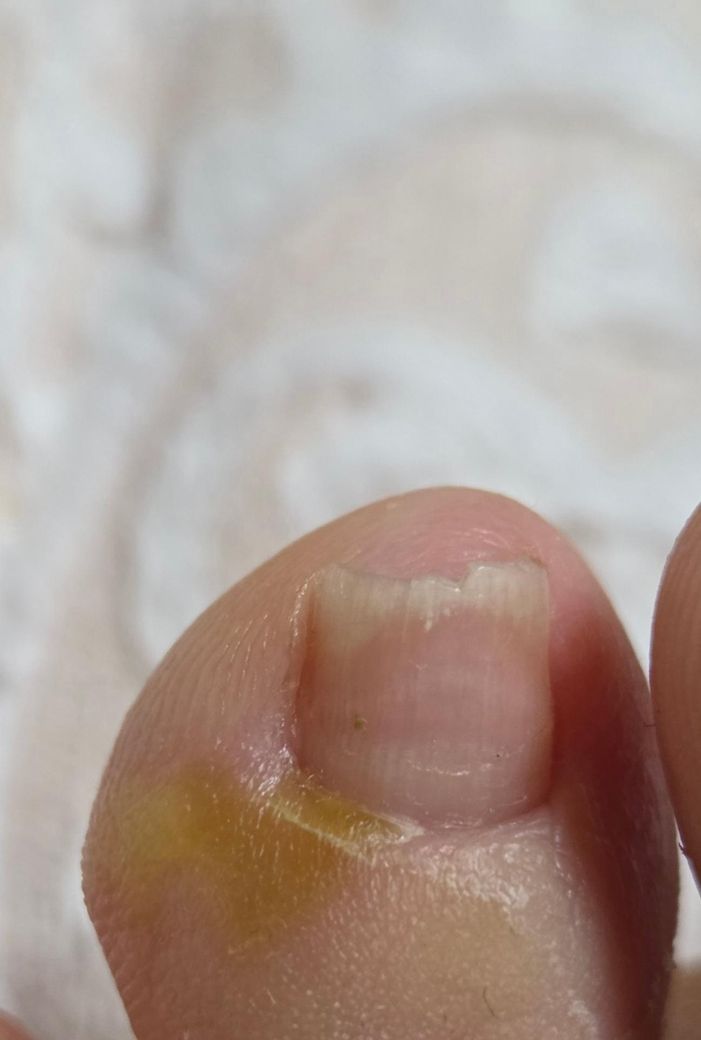 발톱 주변(특히 엄지)은 작은 자극에도 수포가 생기기 쉽습니다.