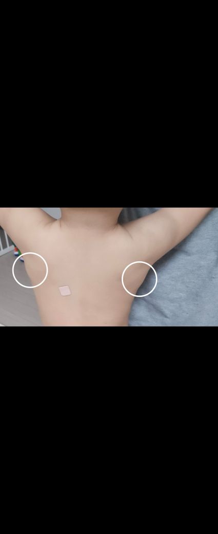 사진에서 아이 등에 도드라져 보이는것은 근육에 해당합니다 광배근이나 소원근이 자리한 부위입니다
