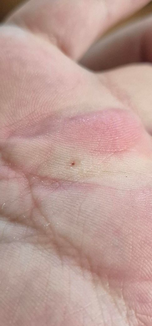 손바닥에 가시같은게 있어서 부모님이 바늘로 빼주셨는데 이거 피가 나서 이렇게 된건가요? 피는 지금 안나는 상태이구요 바로 손 씻고 포비든으로 소독하고 마데카솔 발랐습니다. 근데 땀이 들어가며는 따가운 느낌이 드는데 피부가 까져서 그런건가요?
