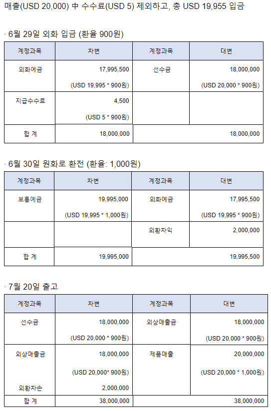 외상매출금이 USD 20,000 * 900원 = 18,000,000원 인가요?