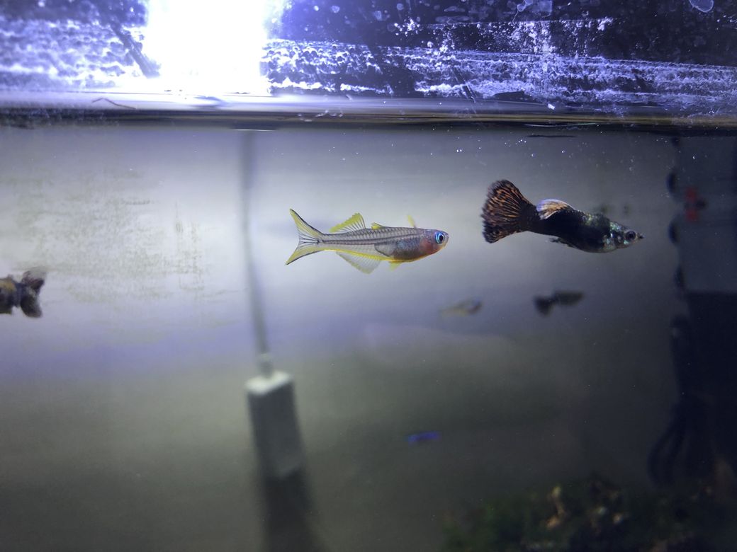 구피 뒤에 있는 물고기는 이름이 뭔가요?