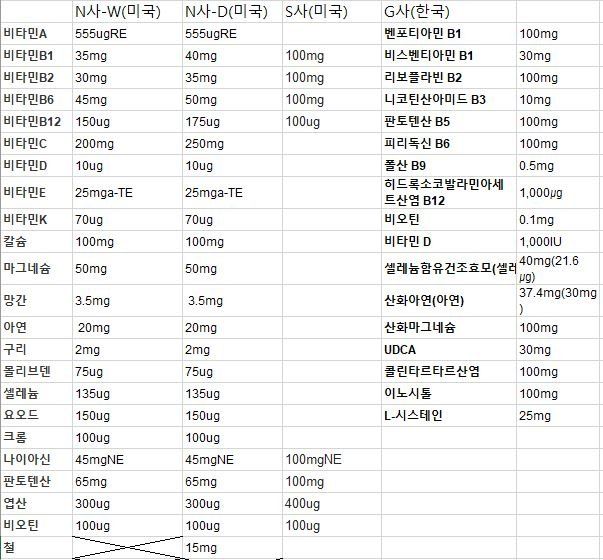 개인적으로 함량을 봤을때는, N사 - D 제품이나 한국제품을 드시면 좋을 것 같습니다.