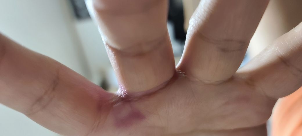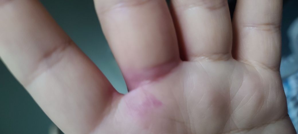 손가락에 보라색 멍.볼펜으로 그은듯한멍이 생겼어요