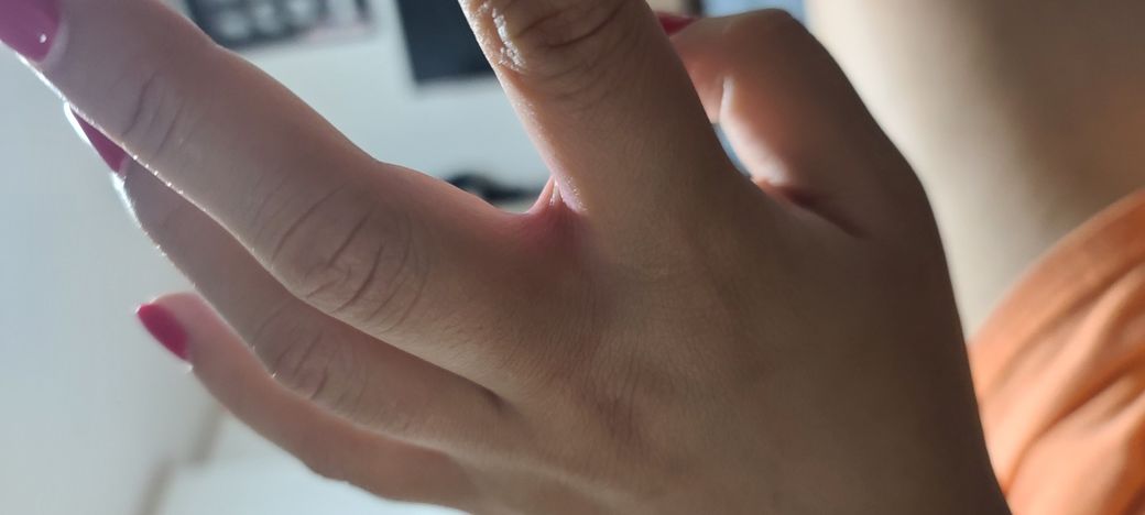 질문하신 내용에 대하여 아래와 같이 답변 드립니다.손가락 피하조직에 내부로 출혈이 있거나 상처가 생긴 듯 합니다. 통증같은 증상이 심하지 않다면 조금 지켜보시길 추천드립니다. 자연호전 될 가능성이 많습니다. 혹시 더 커지거나 증상이 생긴다면 피부과에 가보세요