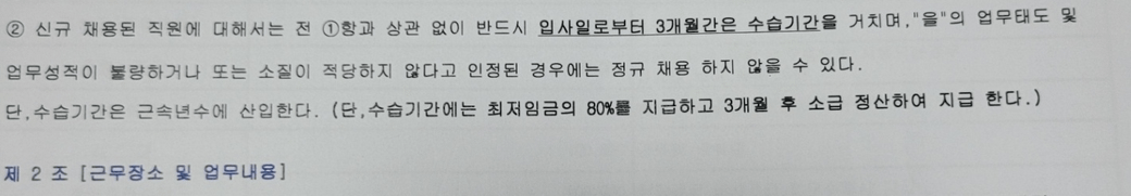 수습기간 감액이 유효하기 위해서는 1년이상의 계약체결 및 수습기간 3개월이내로 명시해야하고,