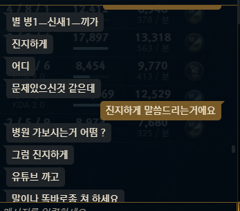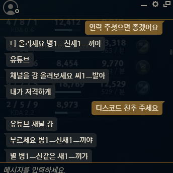 게임 시작전부터 저에 대한 비하를 하다가 게임 시작하고나서