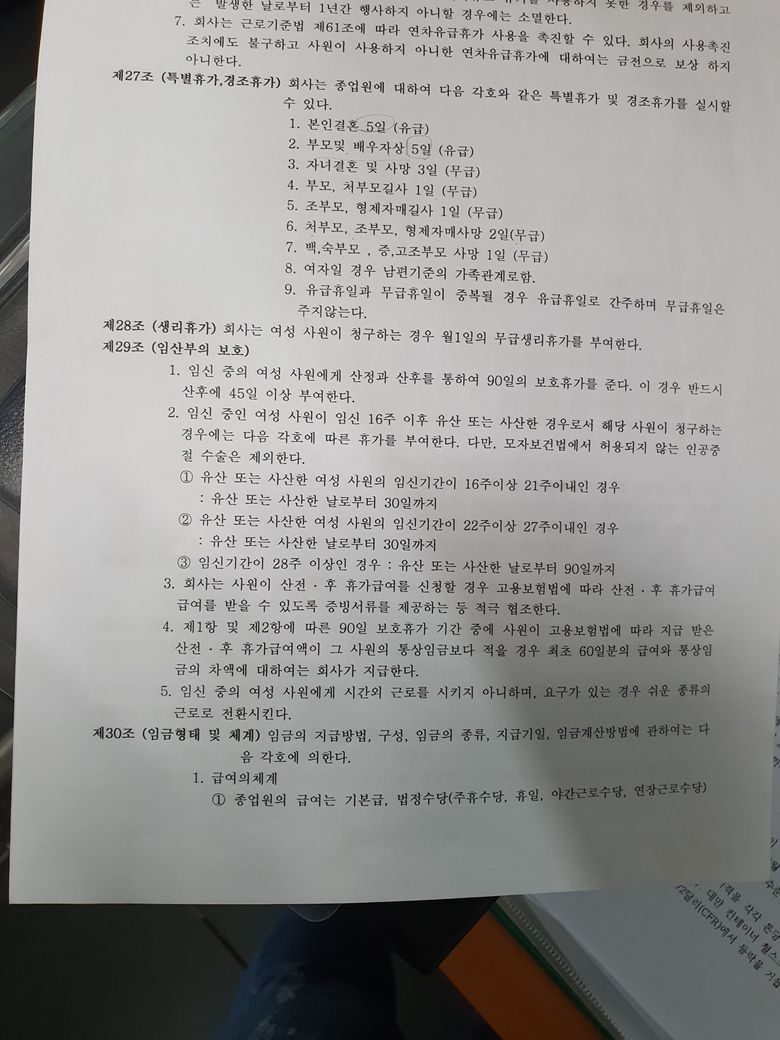 1. 회사 취업규칙에는 기본급(70%) + 법정제수당(30%-주휴수당,휴일,야간근로수당,연장근로수당) 으 로 구성되어있다고 합니다
