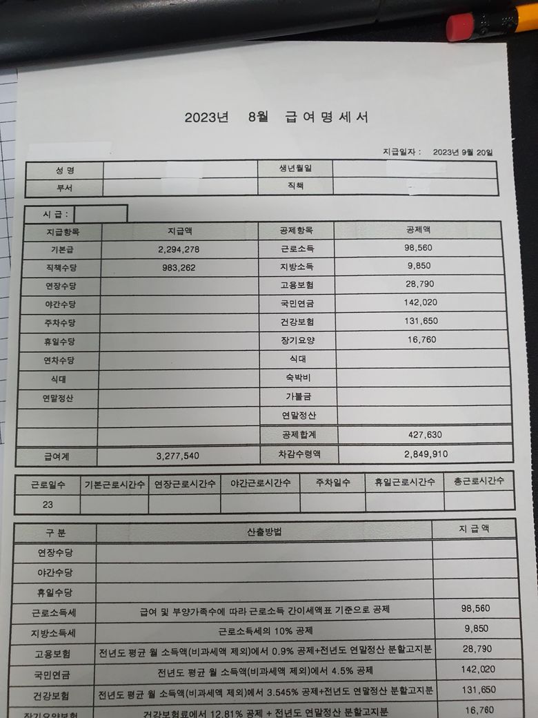 2. 급여내역서에는 기본급(70%) + 직책수당(30%)로 기재되어있습니다.