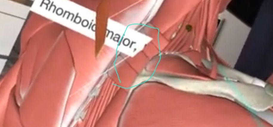마름근을 걷어내고 있는 근육은 serratus posterior superior muscle입니다 보통 호흡을 할때 보조해줍니다 위뒤톱니근이나 상후거근이라고도 부릅니다