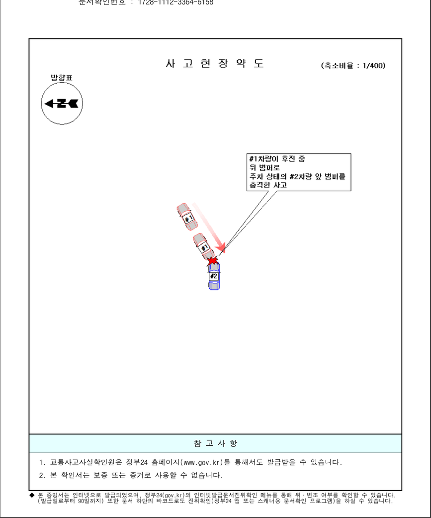 결국 직접 경찰서도 가서 신고접수를 하였고 지난 주말 교통사고 사실확인서를 발부 받았습니다