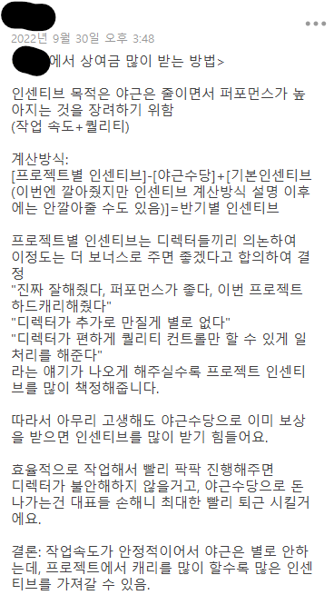 문제의 상여금 기준은 자기들끼리 알아서 잘 하고있다며 직원들에게 공유되지않고있습니다
