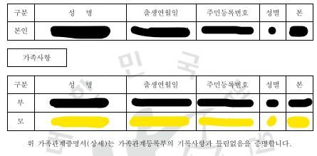 최대한 인증되길 바라는 마음에 저와 저의 어머니의 등본 둘 다 제출했음에도 불구하고
