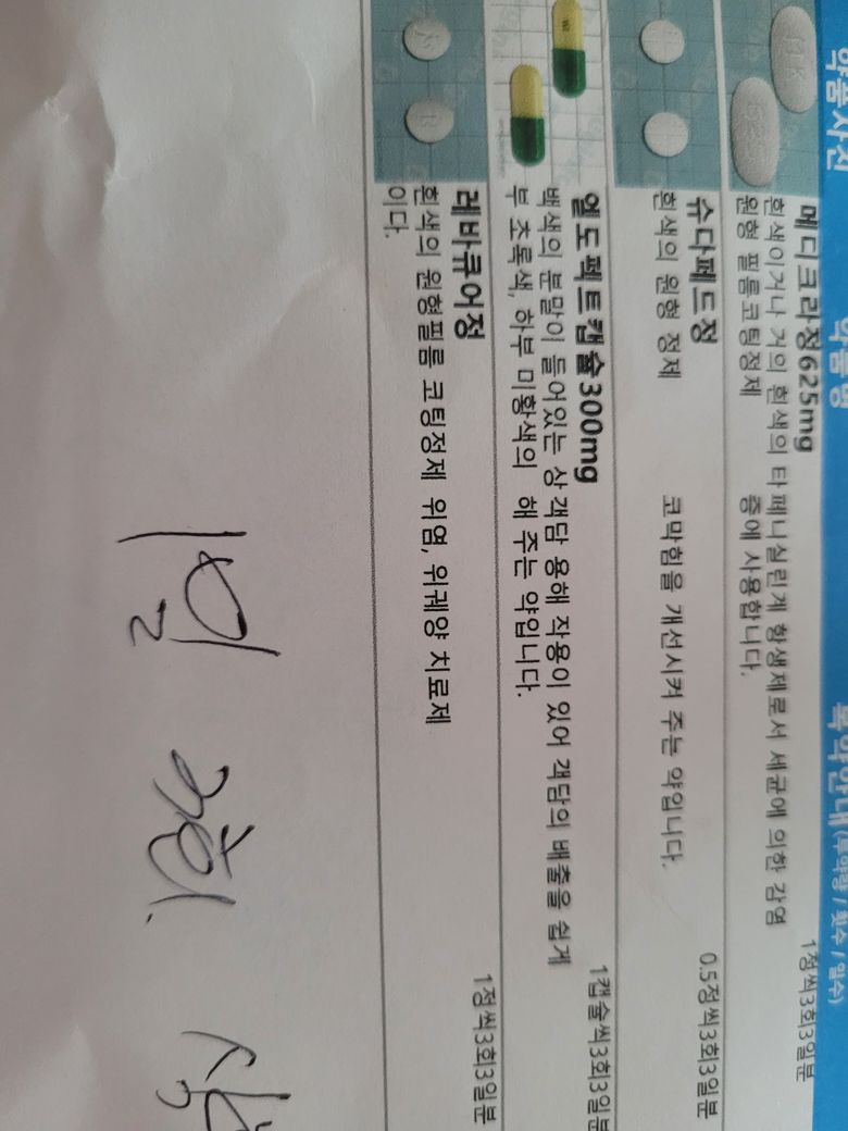 처방받은 약중에 메디크라정625mg라는 약은 설사가 나타날 수 있어요.