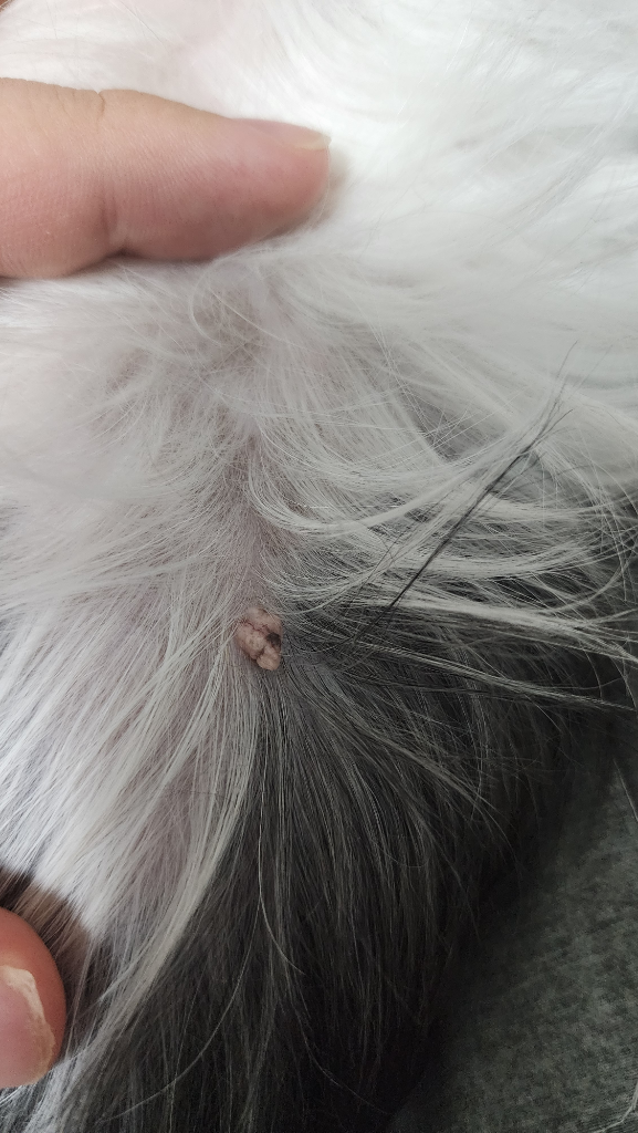 일종의 사마귀 혹은 뾰루지입니다. 큰 걱정 안해주셔도 되고, 거슬리시다면 뗴어내신 뒤 조직검사를 진행해보시는 것이 좋습니다.