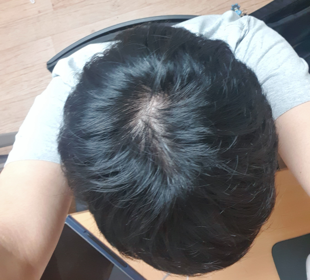 머리가 굉장히 수북하십니다. 가마부분을 걱정하신듯 한데 탈모를 걱정해야할 상황이 전혀 아닙니다.