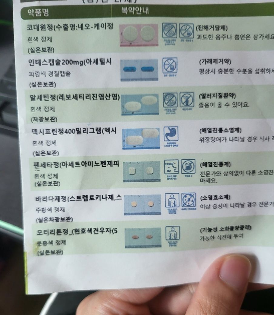 9) 기타 : 오한, 발한이상, 흉통, 피로감, 월경이상코대원정의 용량을 줄여서 복용하기 위해서 반으로 잘라서 복용할 수 있습니다. 코대원정 및 인테스캡슐의 가슴 두근 거림 증상은 흔한 부작용이 아니지만 발생 할 수는 있기 때문에 복용하며 경과를 지켜보시길 바랍니다.