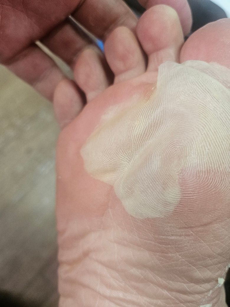 지금은 발바닥이 사진과 같이 벗겨졌습니다