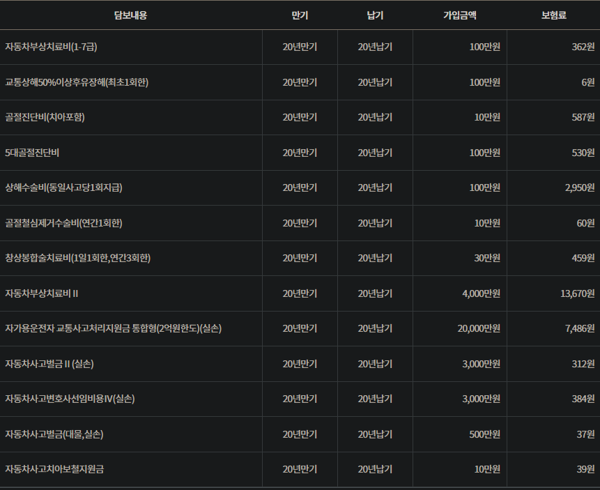 기본적인 보장만 가입한다면 1만원대 가입도 가능하지만 상해관련 보장이 추가된 상태인데 중복가입담보들이 있다면 법률비용담보만 선택하는것도 방법입니다.