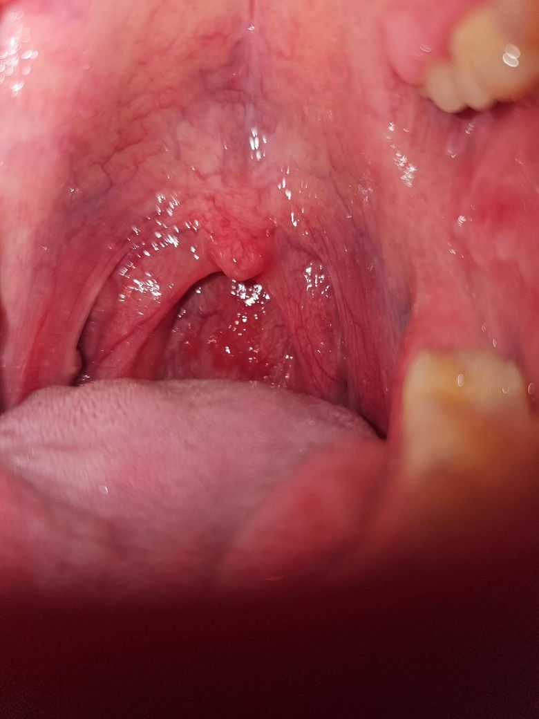 친구네 집에서 하룻밤 자고 나니 이런게 생기고 아침부터 가래를 뱉기 시작했습니다.