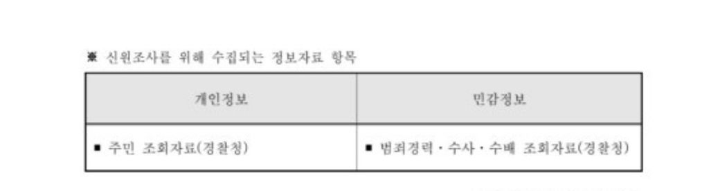 이번에 보안업무규정33조,36조의거 신원조사를 한다는데 개인정보