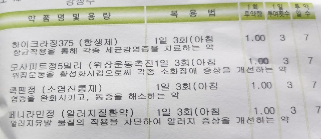 기타 다른 세균 감염과 증상을 조절하는 약제를 처방 받은것이고요.