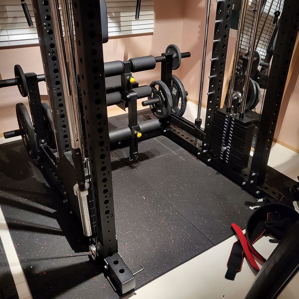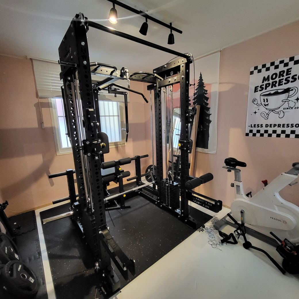 2mX2m 를 기준으로 총 5개의 지지대가 있고 홈짐 + 각종 원판 을 포함한 무게는 550kg이 됩니다.